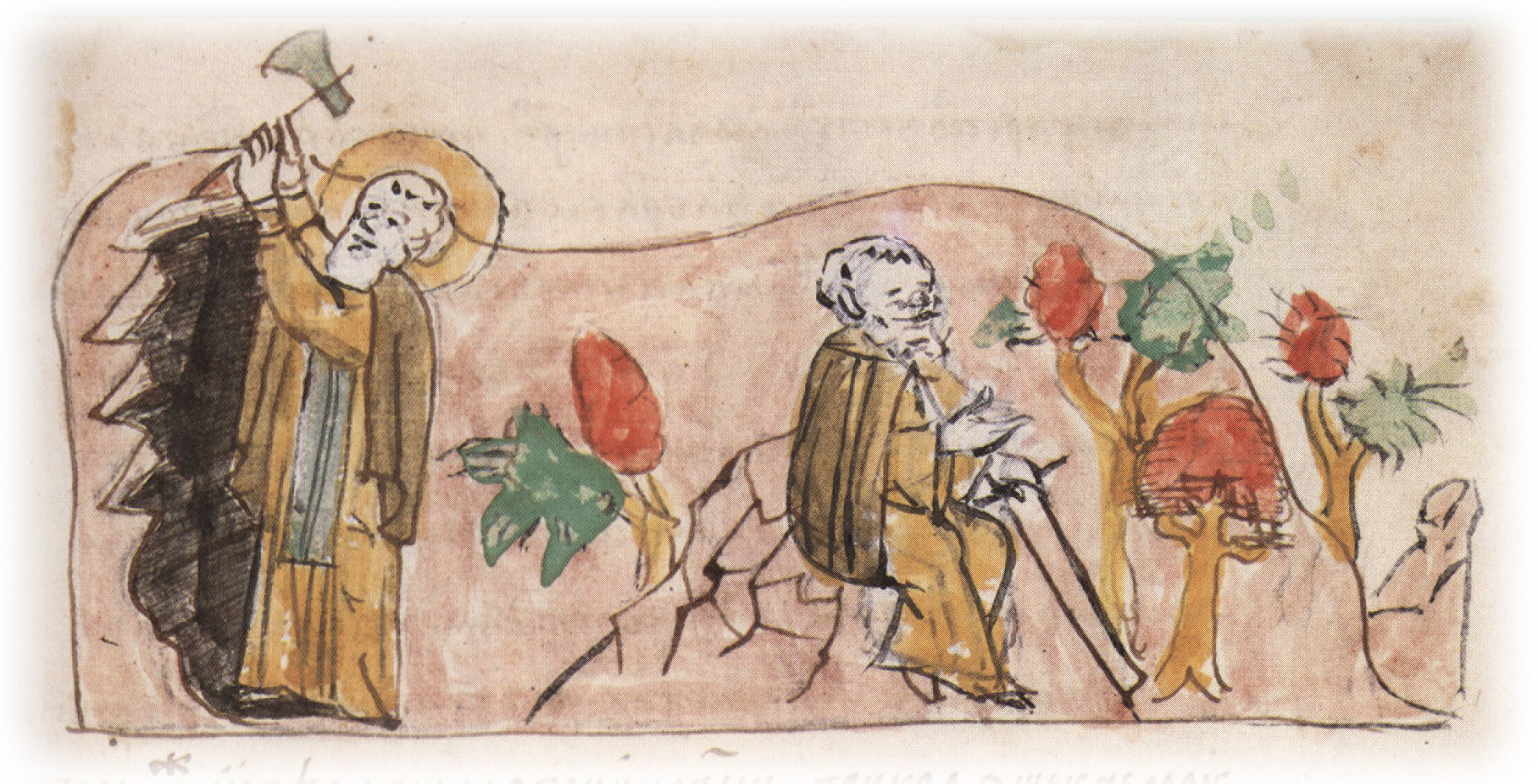 Основание Антонием Печерским кельи на холмистом берегу Днепра в пещере, где до него жил Иларион; пребывание Антония в постоянных трудах и молитвах.