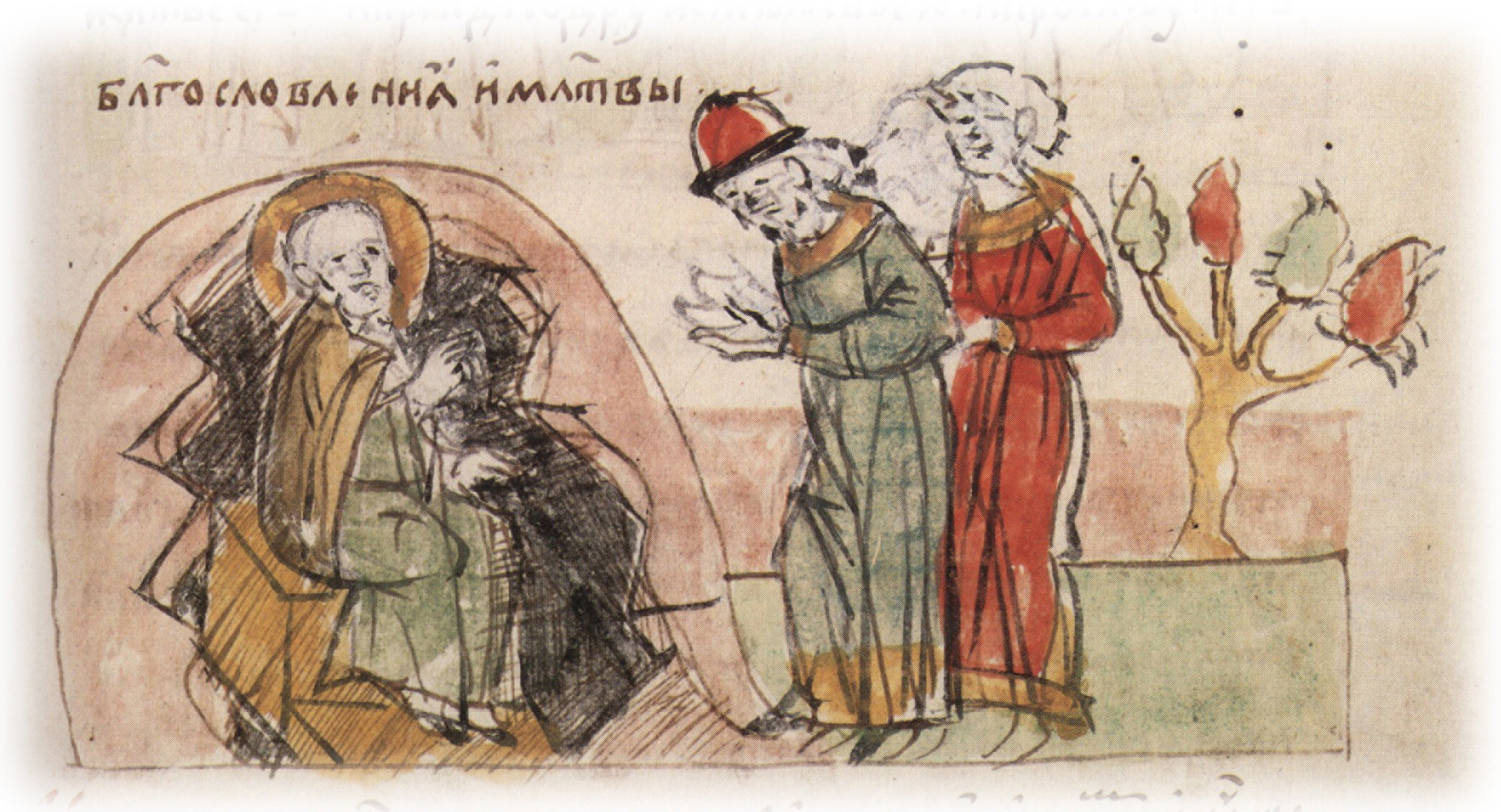 "Изяслав же, уведа житье его и прииде со дружиною своею, и прося у него благословенна и молитвы".