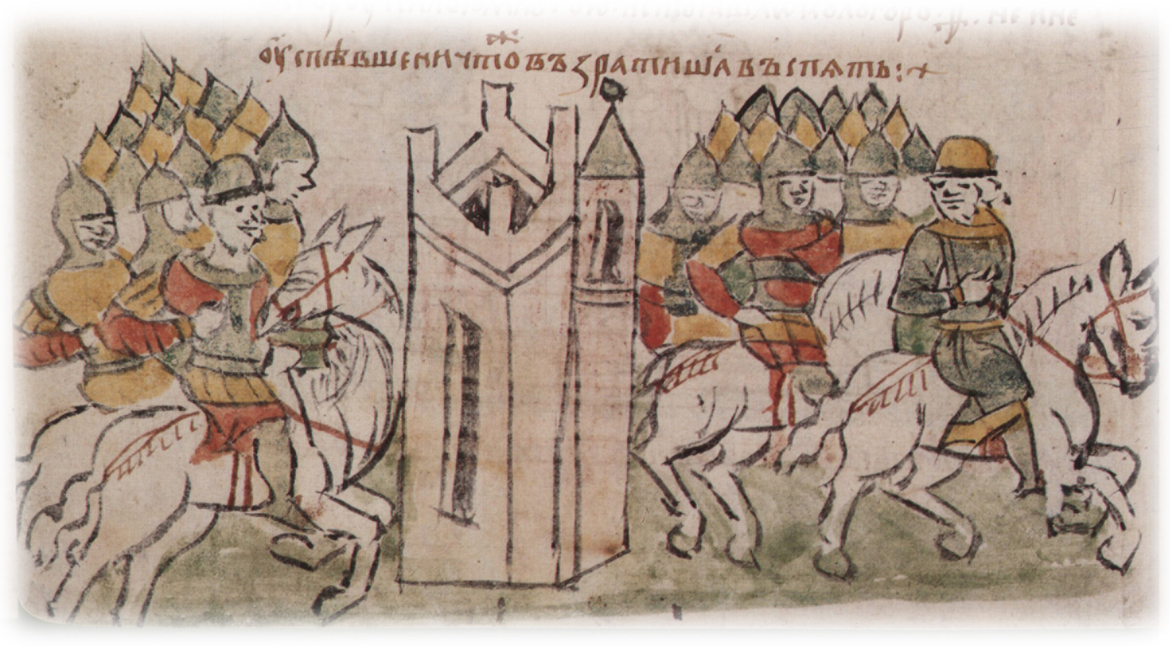 "...пришедше же к Вышегороду с силою многою, и стояша же около города 9 недель, и не успевше ничто же, възратишася въепять".