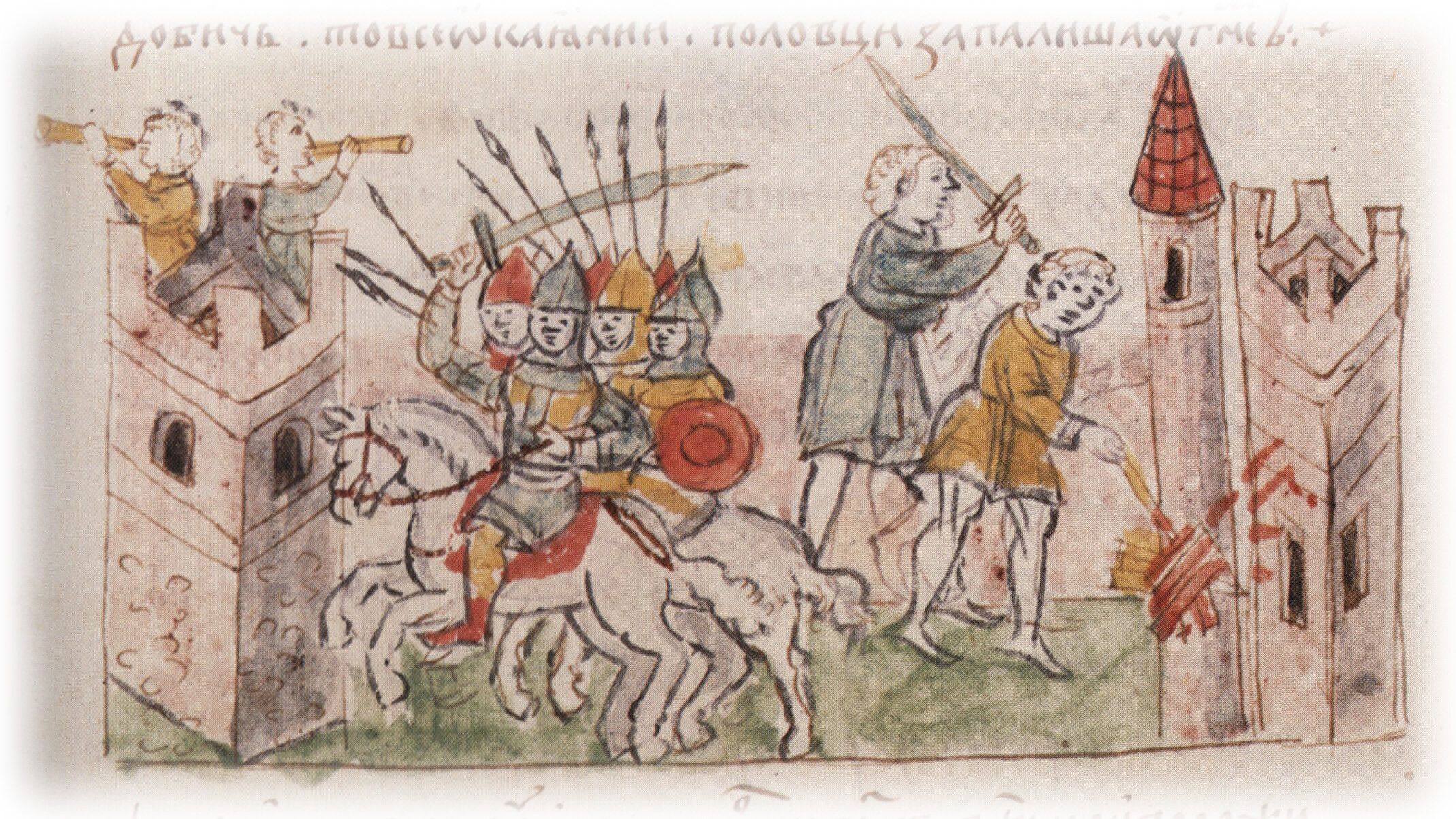 "...прииде Боняк второе безбожный, солудивый, отай, внезапу, мало в град не вгнаша половци, и зажгоша по песку около града, и возратишася на монастырь, и пожгоша монастырь Стефанеч...".