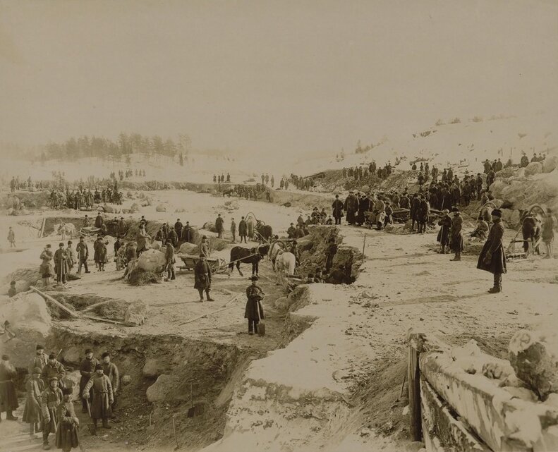 Мариинская водная система. Устройство перекопа у шлюза св. Алексея.
