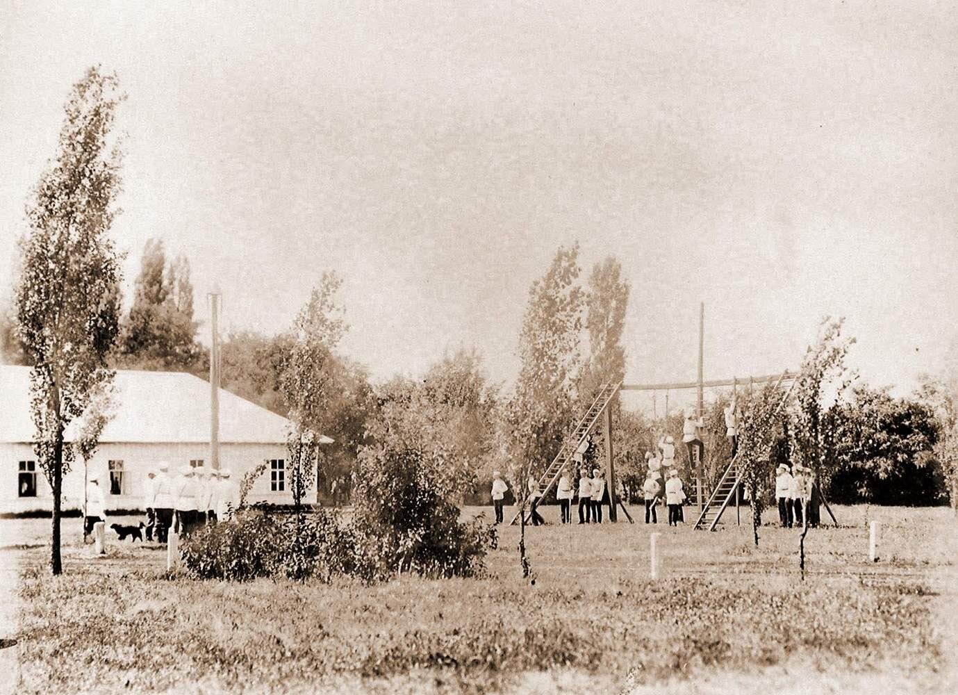 Кадеты Петровского Полтавского кадетского корпуса во время занятий физическими упражнениями