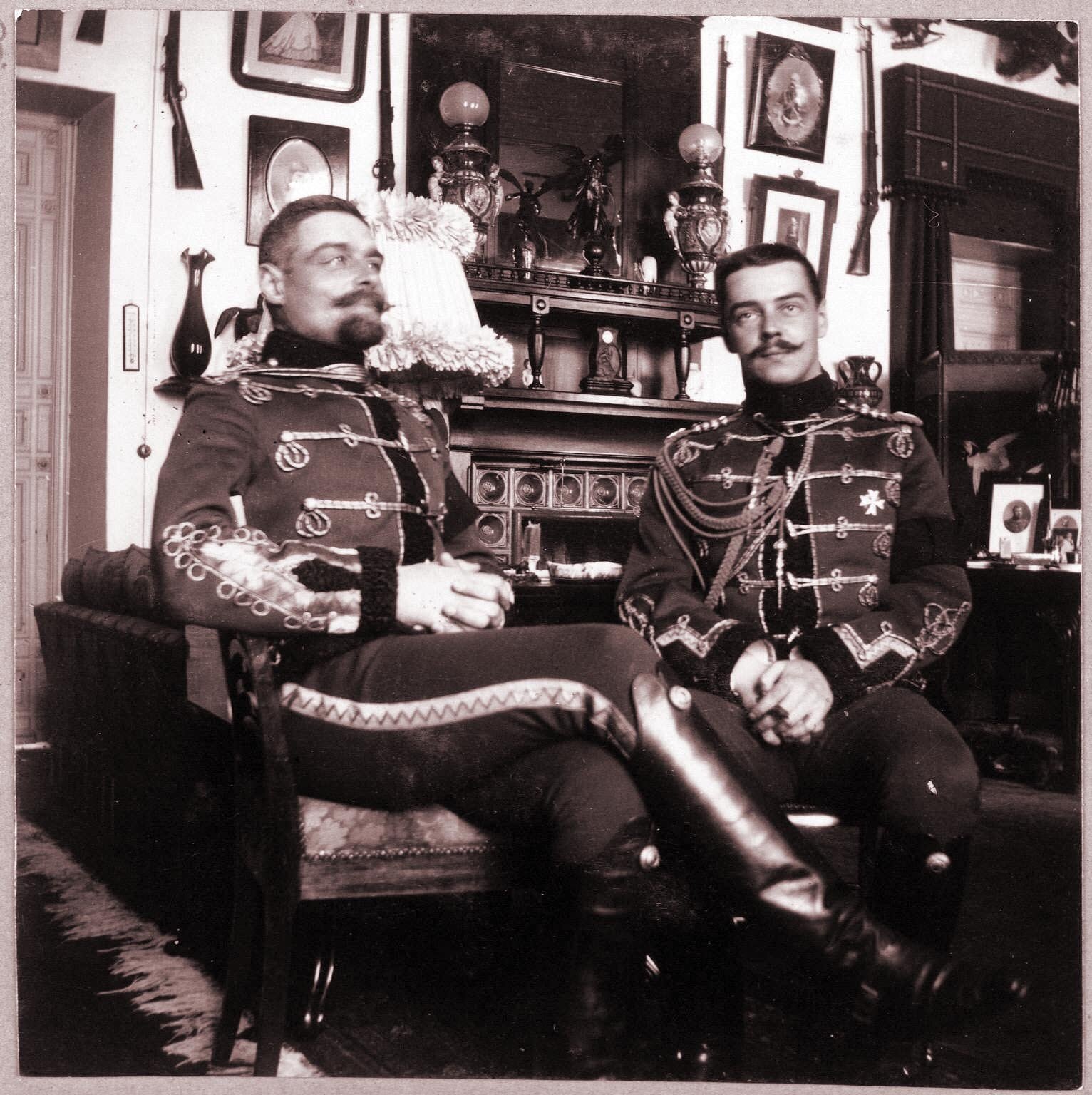 Портрет офицеров Лейб-гвардии Гусарского полка Его Величества полковника Гротена Павла Павловича (1870 г. - 1962). и штабс-ротмистра Воронцова-Дашкова Александра Илларионовича (1881-1938)
