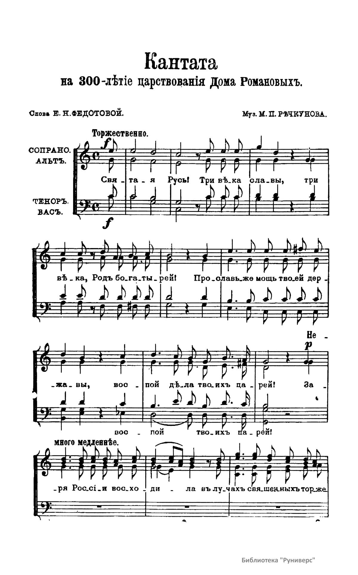 Партитура кантаты на 300-летие дома Романовых
