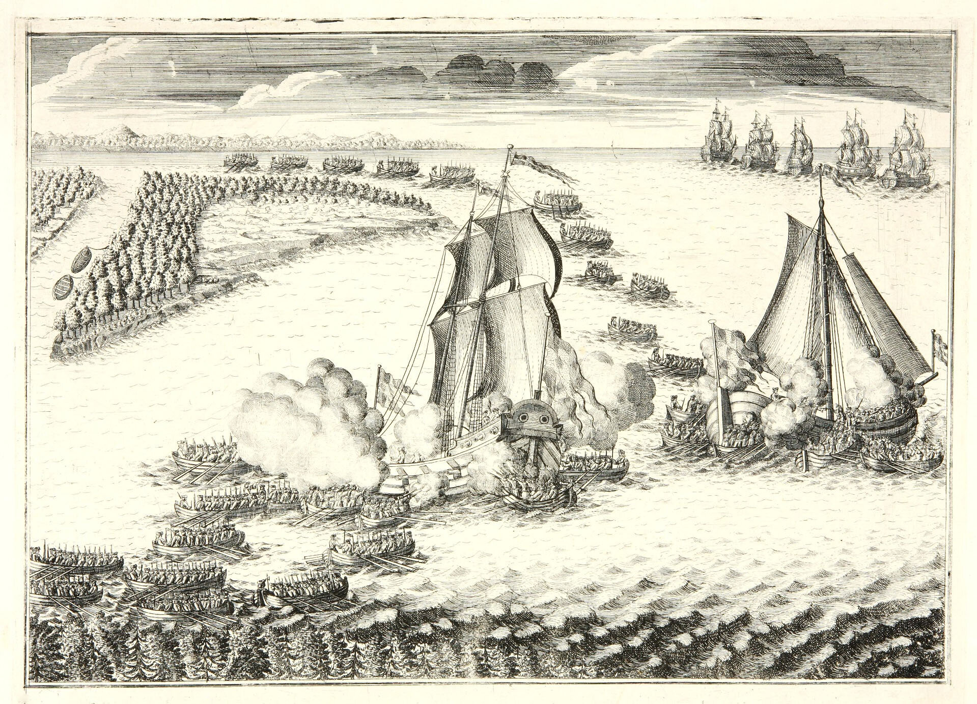 Взятие русскими войсками двух шведских судов в устье Невы 7 мая 1703 года.
