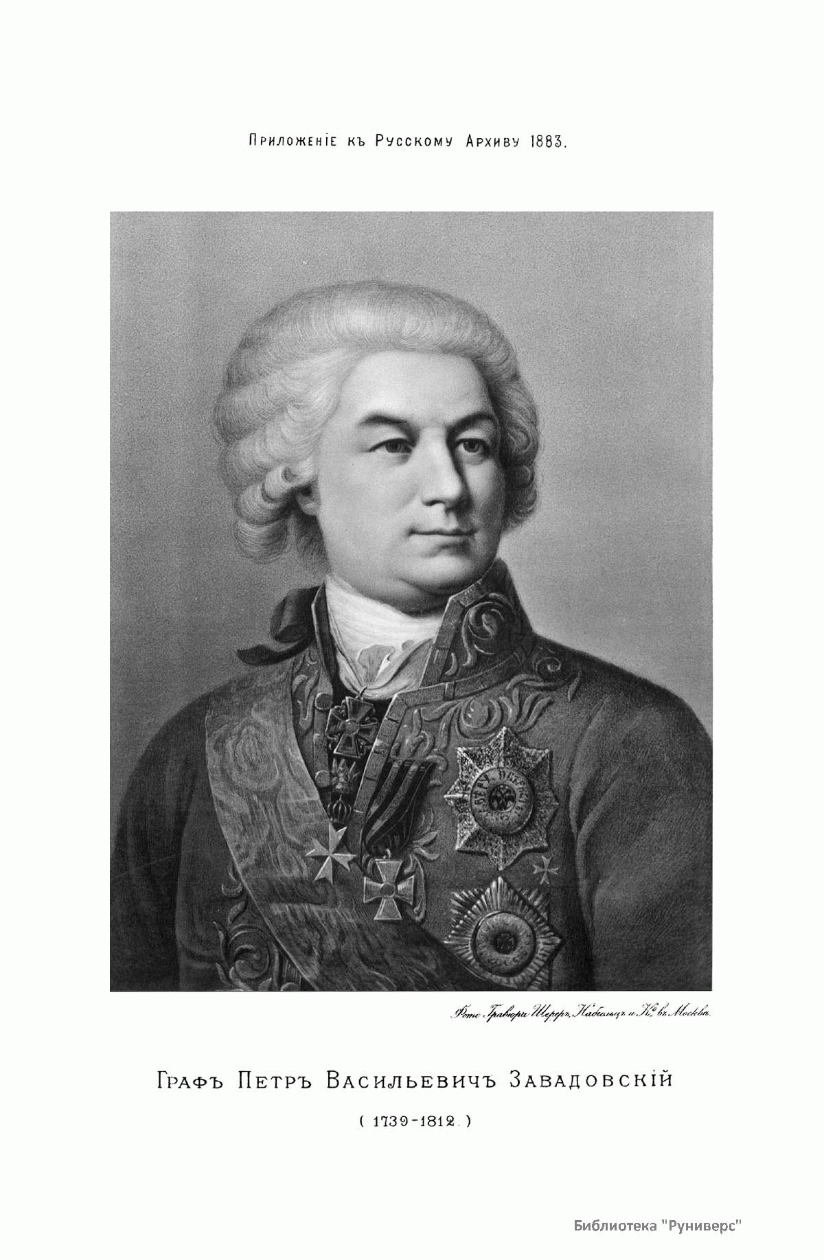 Завадовский Петр Васильевич (1739-1812), российский государственный деятель, первый министр народного просвещения Российской империи ( 1802—1810).
