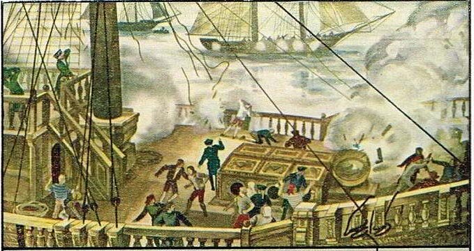 Раздался выстрел. Ядро попало прямиком в котелок с супом, который варила на обед команда Le Louis, и отскочило в море. Палуба, которая в морских сражениях обычно бывает залита кровью, оказалась залита похлёбкой. Столкнувшись с угрозой сопротивления, имперский корабль предпочел сдаться.