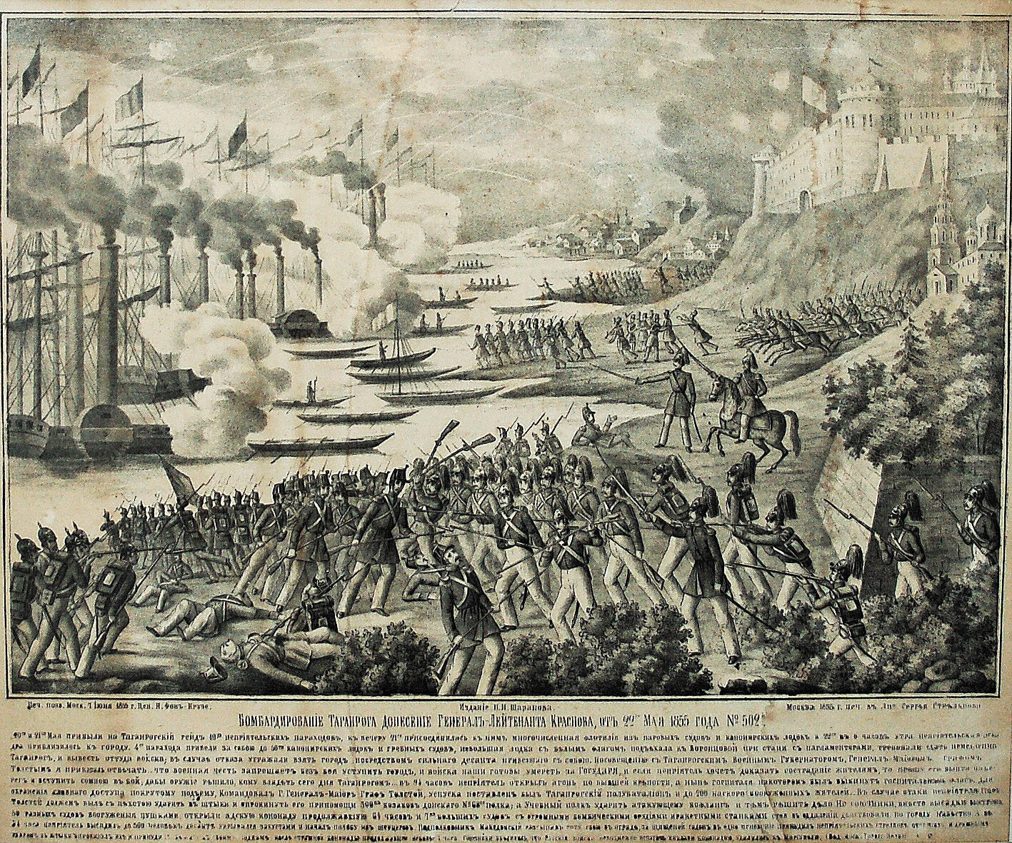 Бомбардирование Таганрога 22 мая 1855 г. (лубок)