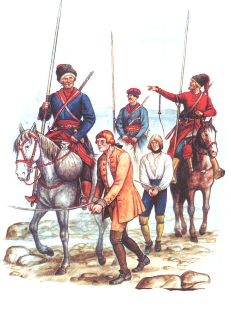 Казаки ведут пленных шведов