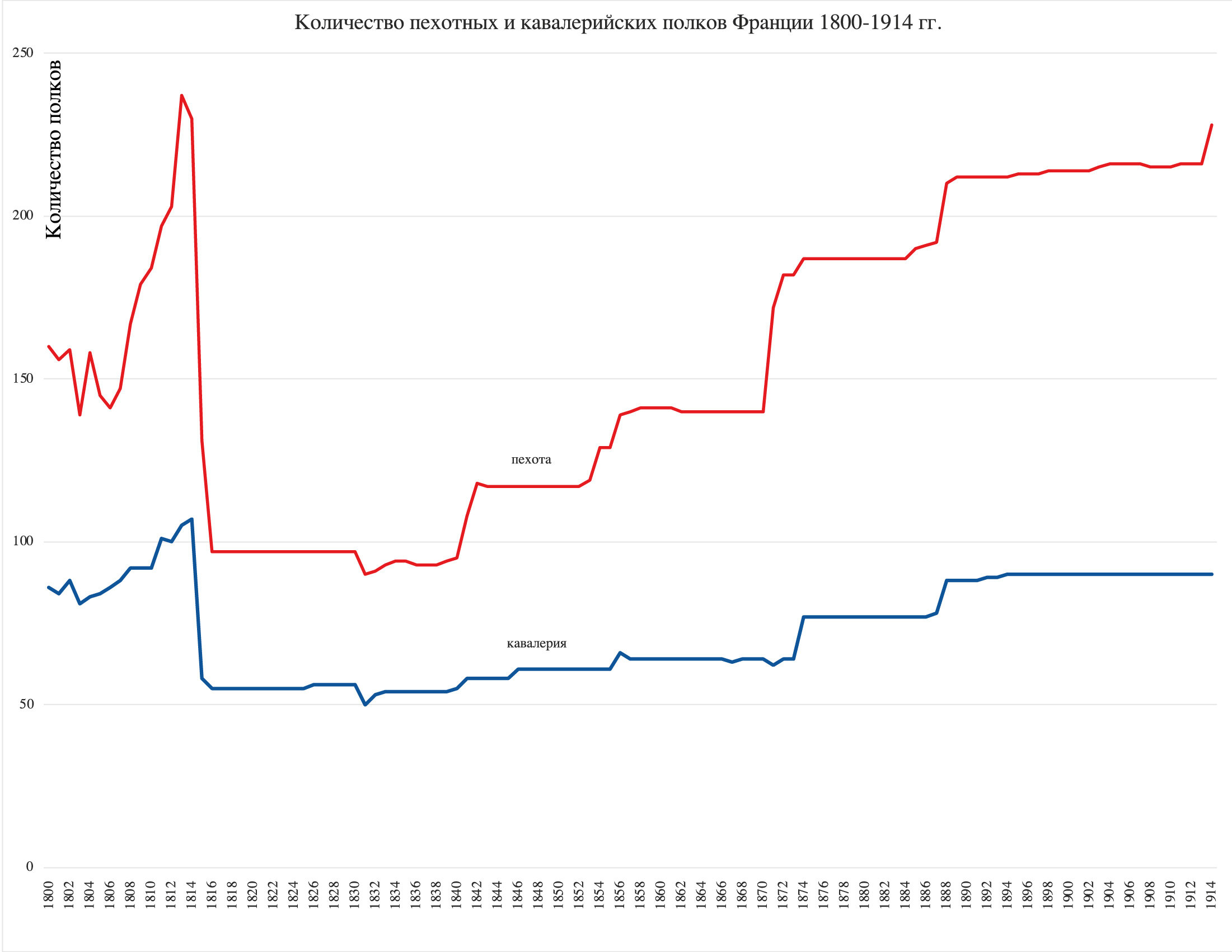 Количество пехотных и кавалерийских полков Франции 1800–1914 гг.