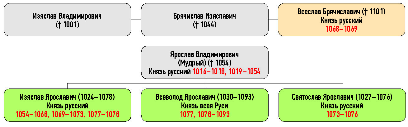 Генеалогическая схема к окончанию усобицы Ярославичей с Всеславом Брячиславичем 3 марта 1067 г.