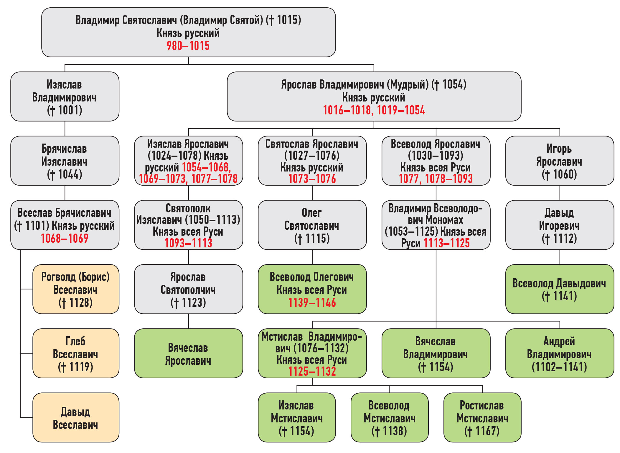 АНО "Руниверс". Оригинальная схема из издания: Селезнев Ю. В. Княжеские усобицы в Древней Руси 977-1132 гг.. — М.: Руниверс, 2018.— 240 с.