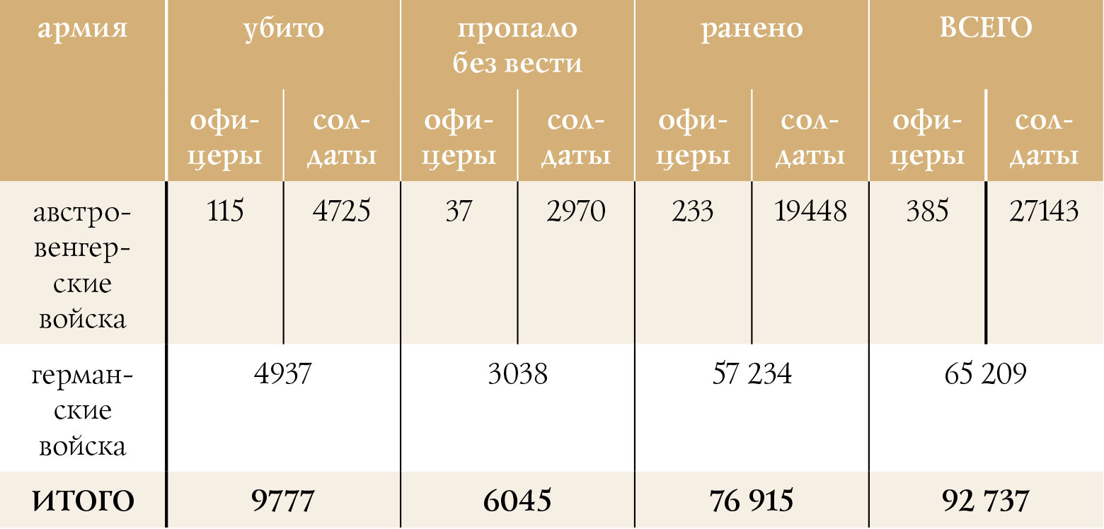 Потери армий Центральных держав на Русском ТВД в феврале–мае 1916 г. по опубликованным данным