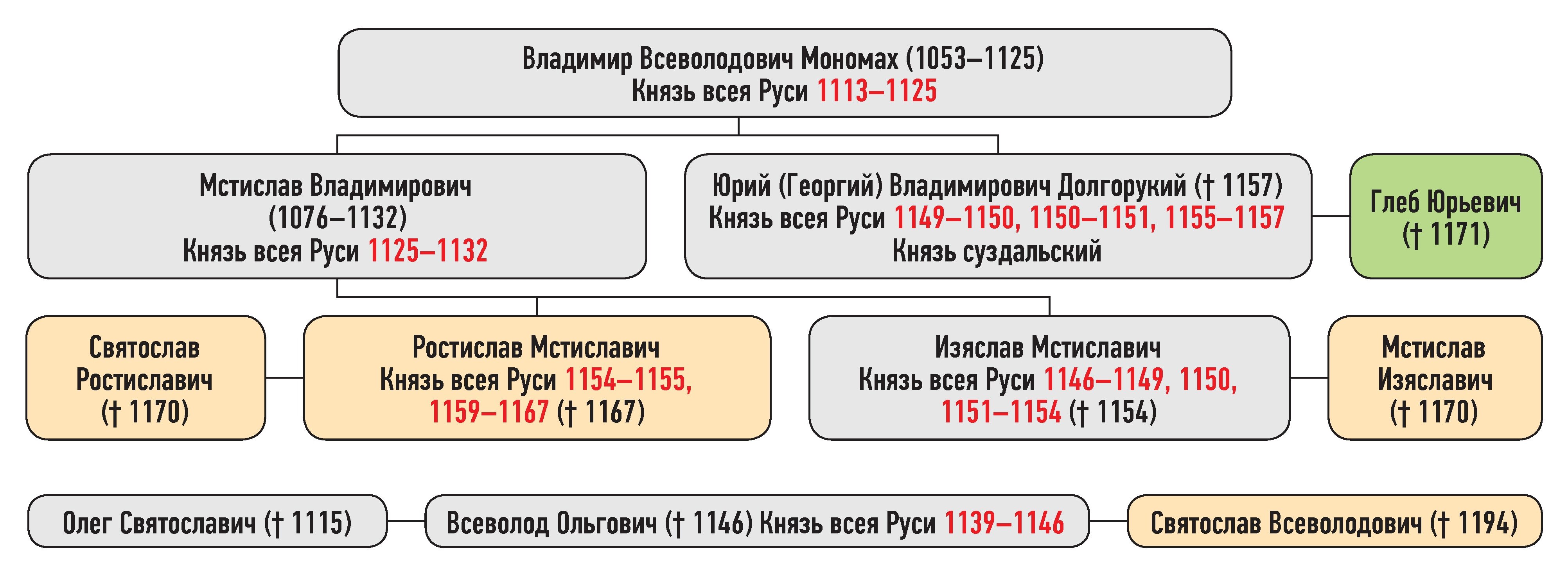 Генеалогическая схема к усобице Глеба Юрьевича и Ростислава Мстиславича в ноябре 1154 г.