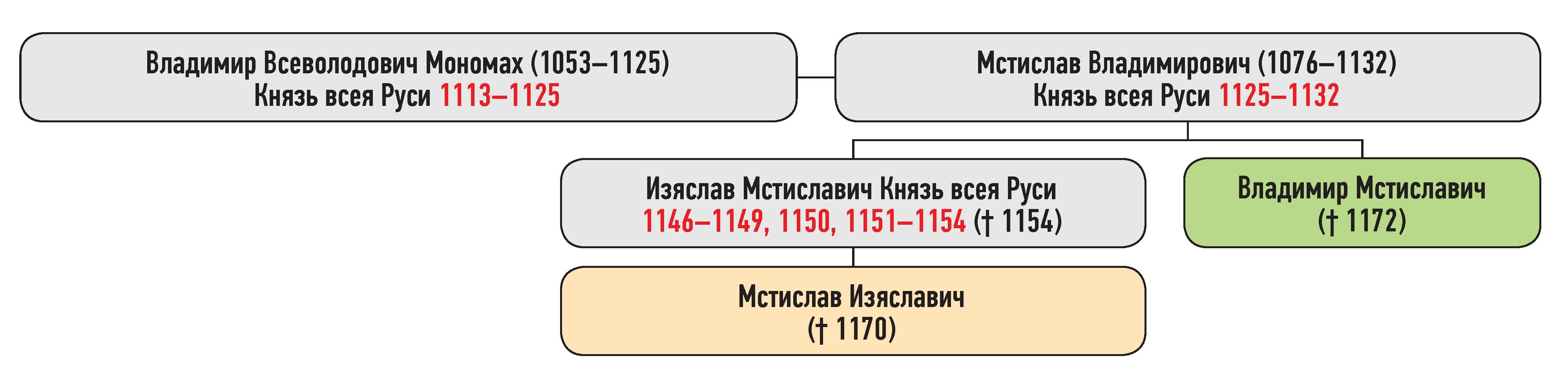 Генеалогическая схема к усобице Владимира Мстиславича и Мстислава Изяславича летом 1156 г.