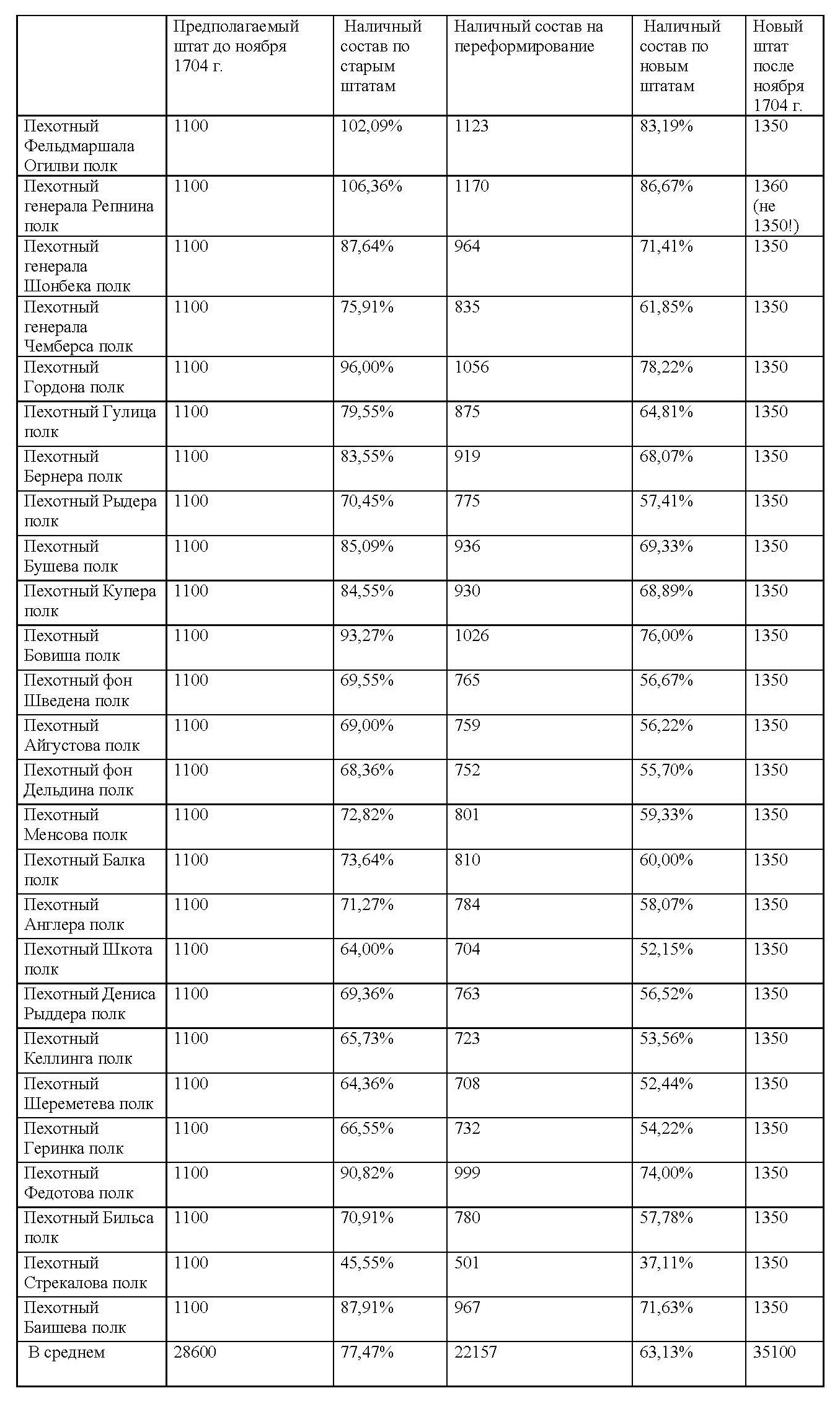 Таблица 2 к статье "База русских полков (1700–1914 гг.). Опыт составления"
