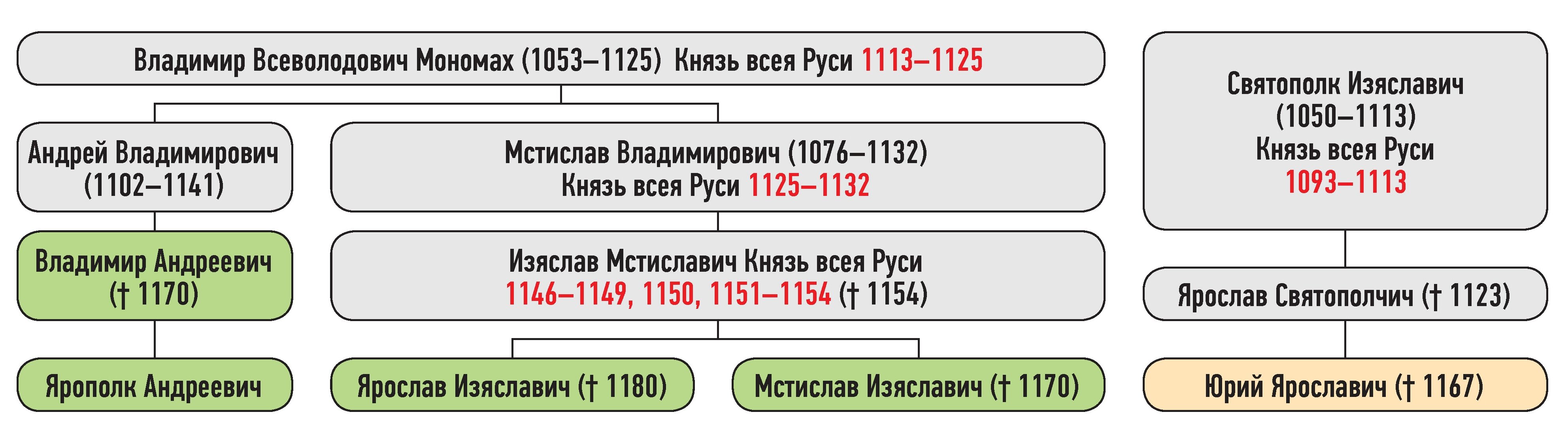Генеалогическая схема к усобице Мстислава Изяславича и Юрия Ярославича зимой 1160–1161 гг.