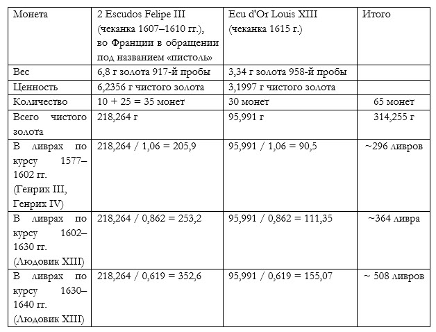 Обменные курсы во Франции в начале XVII века