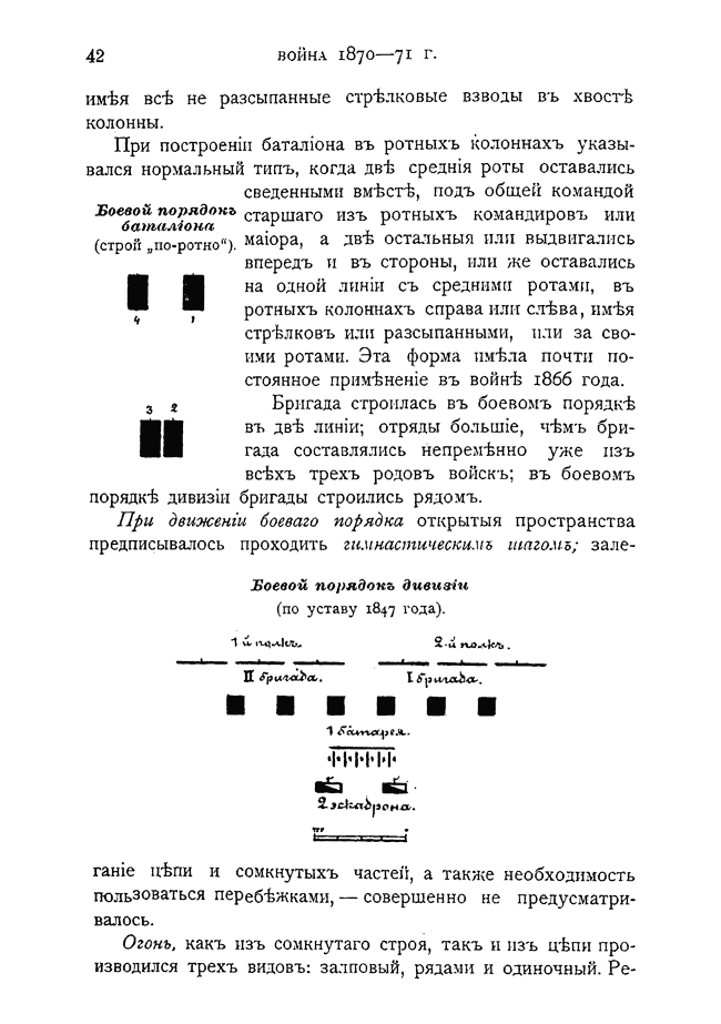 Боевой порядок батальона (строй "по-ротно"). Боевой порядок дивизии (по уставу 1847 года).