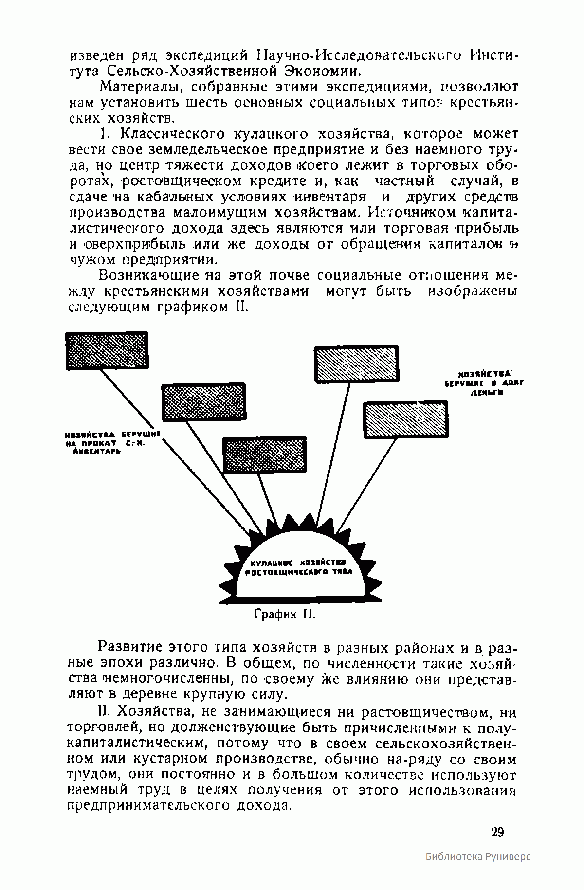 График II. Социальные отношения между крестьянскими хозяйствами при наличие классического кулацкого хозяйства.