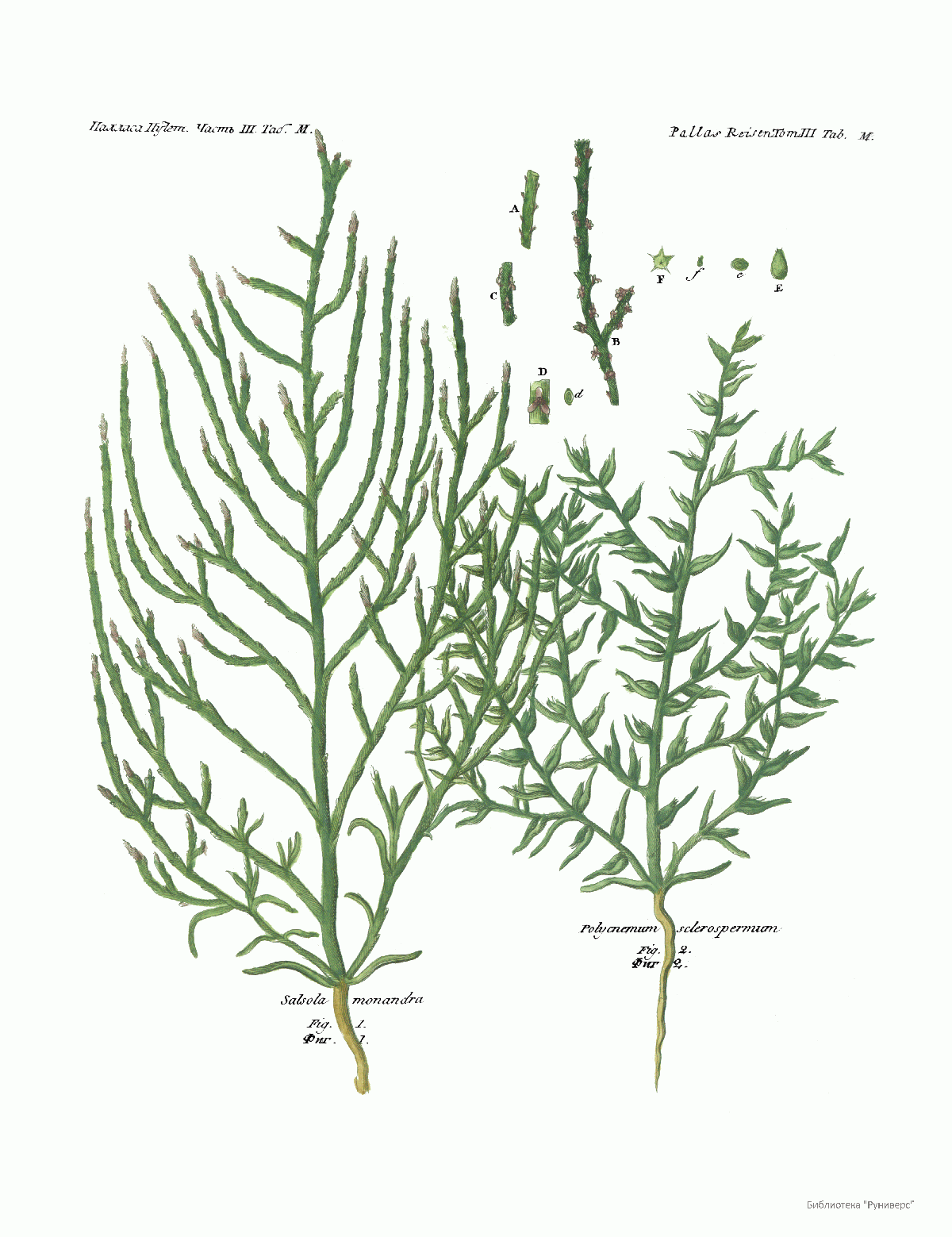 Том III. Таб.M. Salsola monandra. Polycnemum sclerospermum.