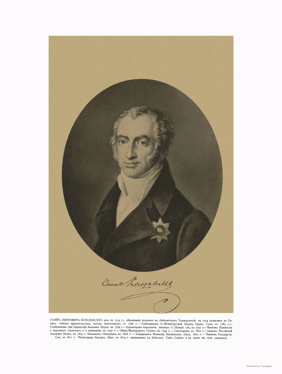 Министр Внутренних Дел Осип Петрович Козодавлев 1754-1819.