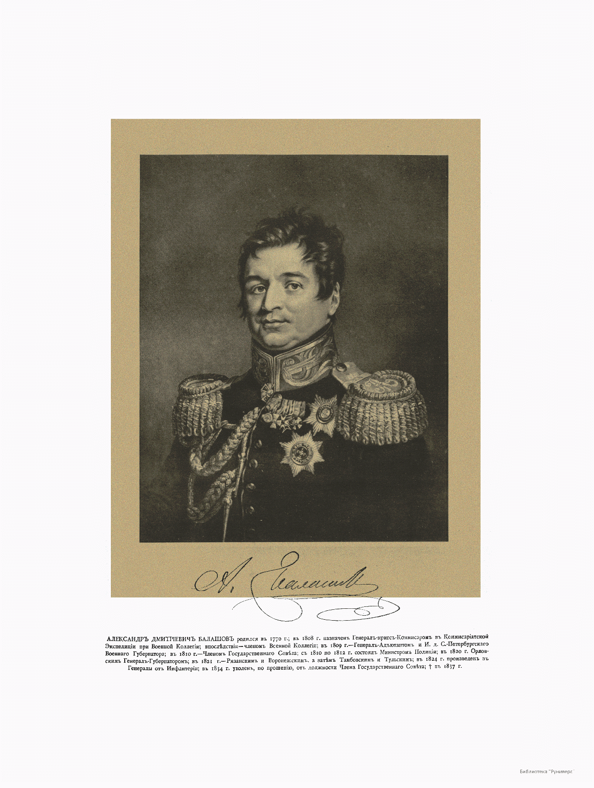 Министр Полиции Александр Дмитриевич Балашов, 1770-1817.