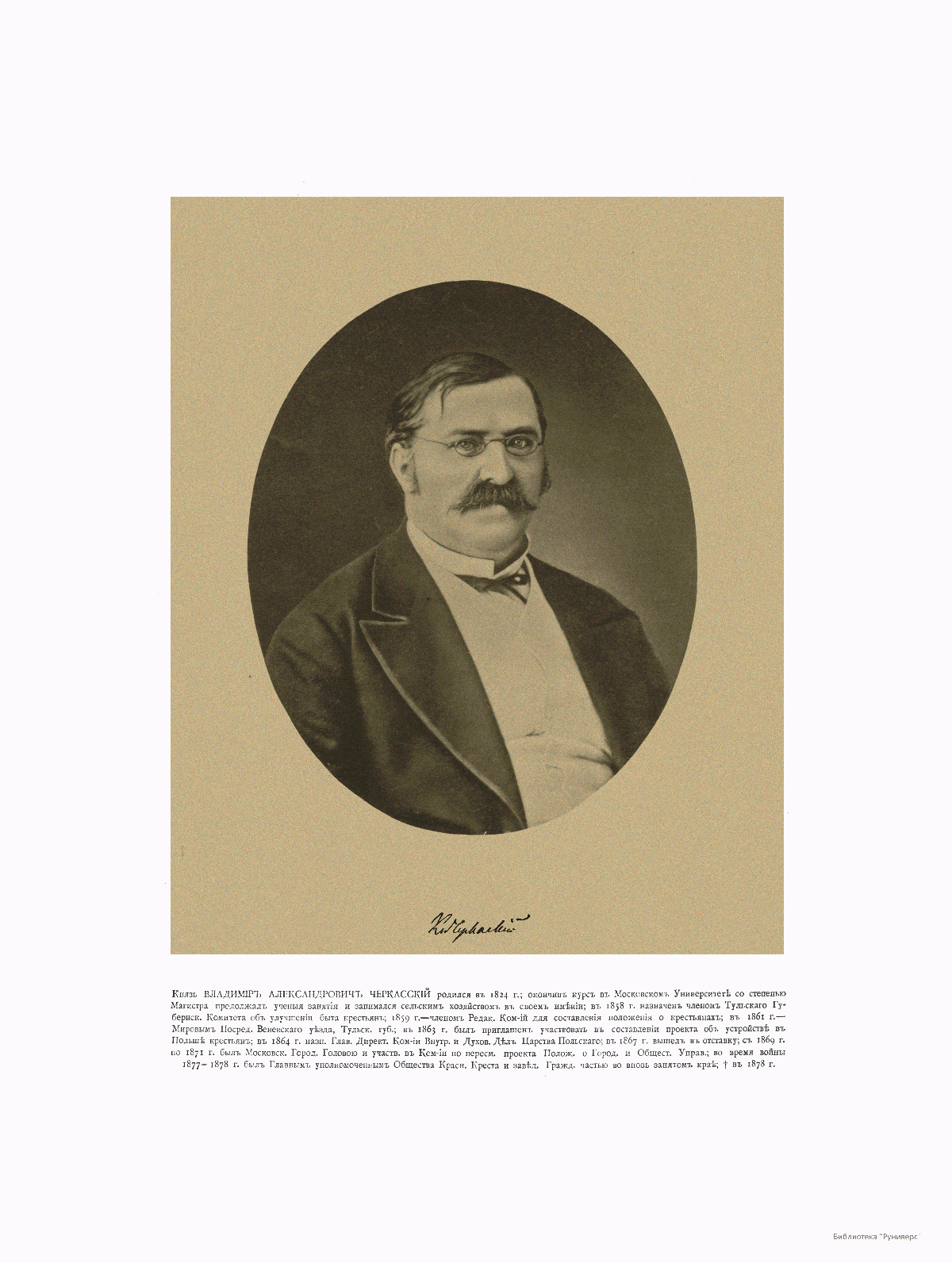 Член Редакционных Комиссий Князь Владимир Алекксандрович Черкасский, 1824-1878.