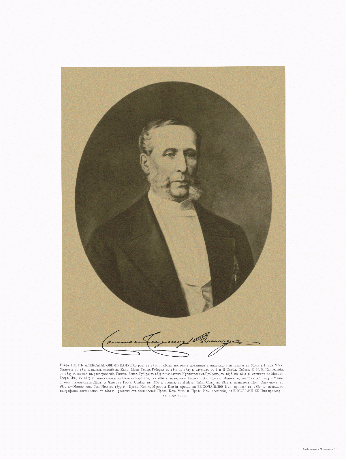 Министр Внутренних Дел Граф Петр Александрович Валуев, 1815-1890.