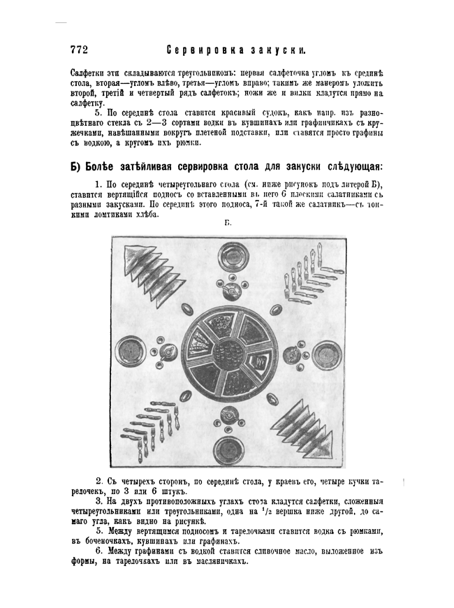Б) Более затейливая сервировка стола для закуски.