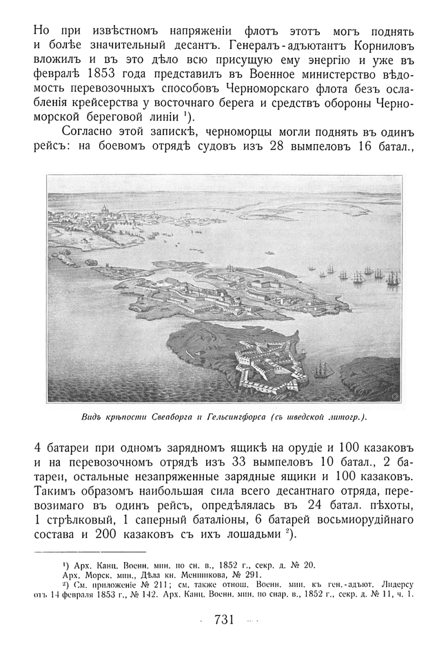 Вид крепости Свеаборг и Гельсингфорса.
