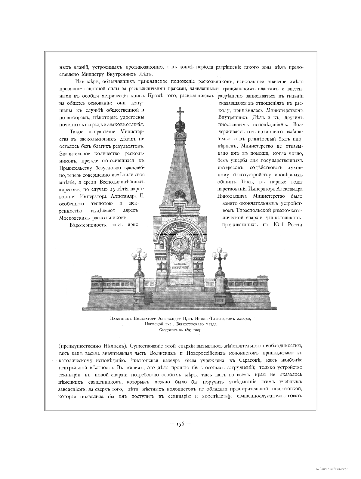 Памятник Императору Александру II, в Нижне-Тагильскои заводе, Пермской губернии, Верхотурского уезда. Сооружен в 1895 году.