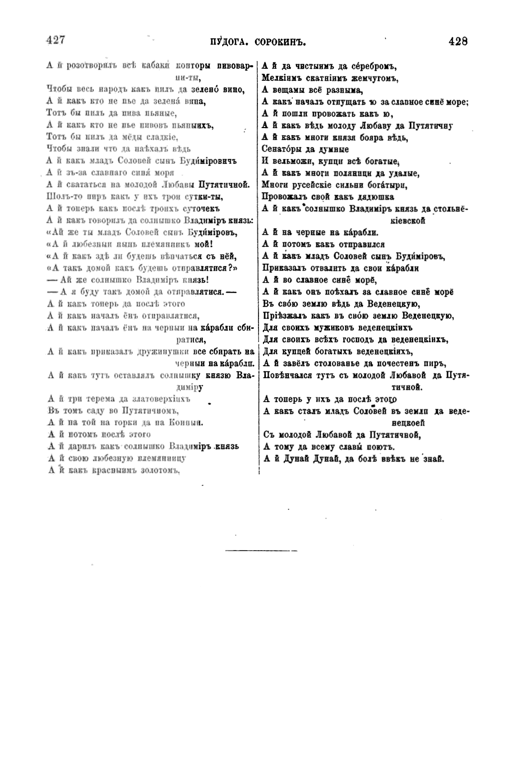 Собрание из 318 былин народных былин, записанных автором во время путешествия по Олонецкой губернии в 1871 году. Для доказательства подлинно народного происхождения текстов, автор расположил в книге былины по исполнителям и снабдил публикацию подробными биографическими справками о «здешних замечательных рапсодах»