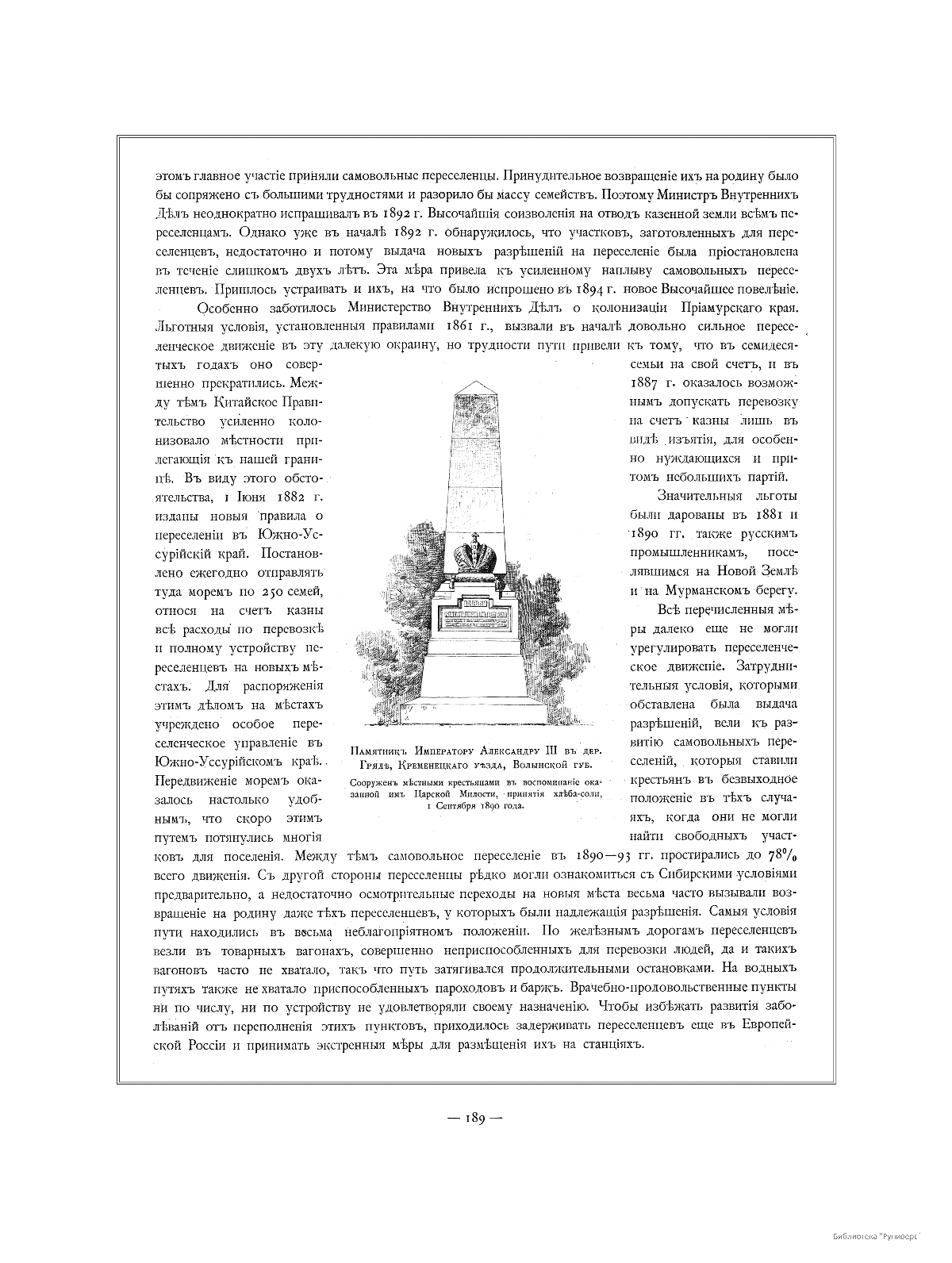 Памятник Императору Александру III в деревне Гряде, Кременецкого уезда, Волынской губернии. Сооружен местными крестьянами в воспоминание оказанной им Царской Милости, принятия хлеба-соли, 1 сентября 1890 года.