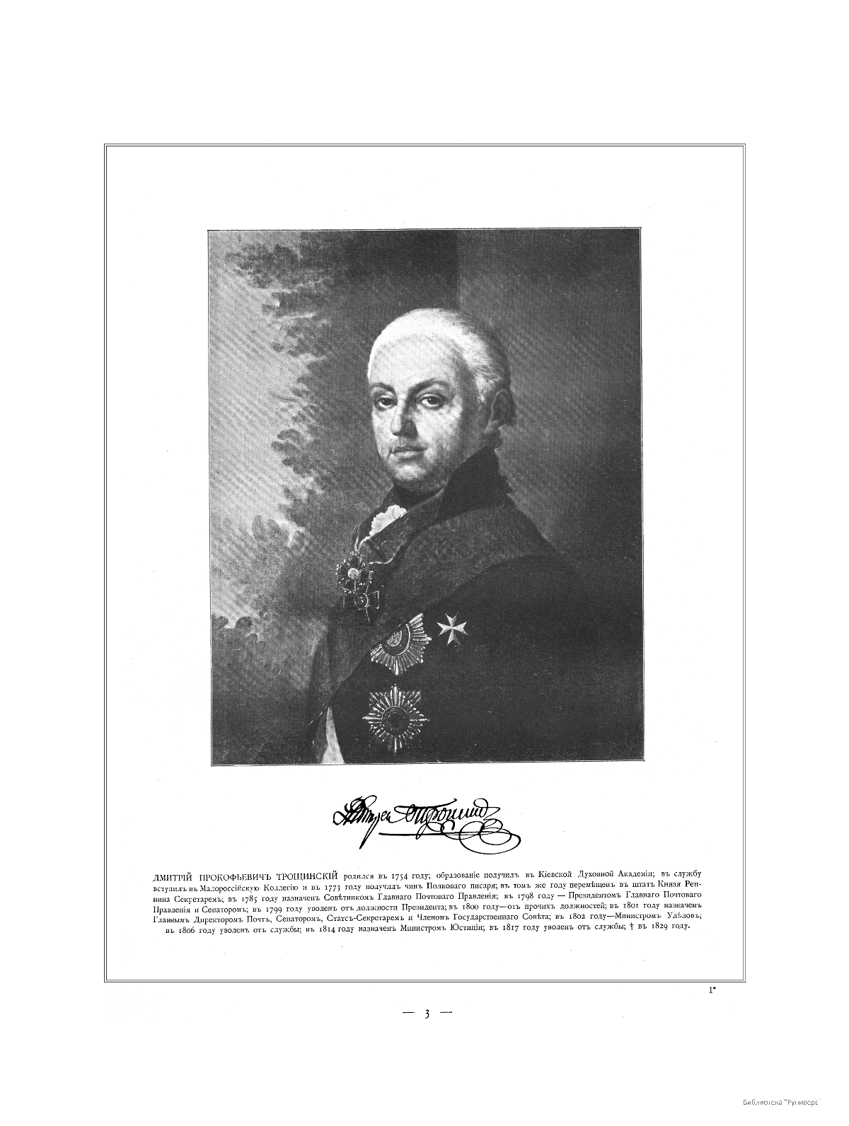 Дмитрий Прокофьевич Трощинский (1754-1829) Министр Юстиции 1814-17гг, с 1798 - Президент Главного Почтового Ведомства.