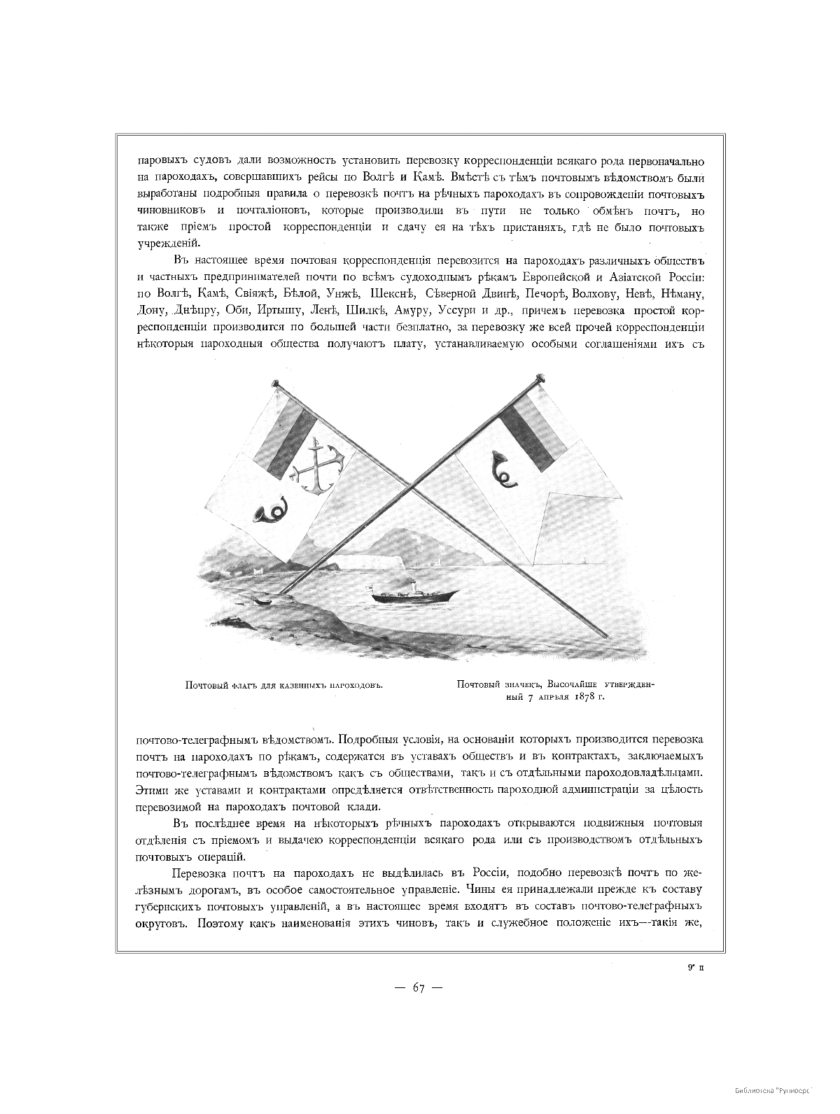 Почтовый флаг для казенных пароходов. Почтовый значек, Высочайше утвержденный 7 апреля 1878 года.