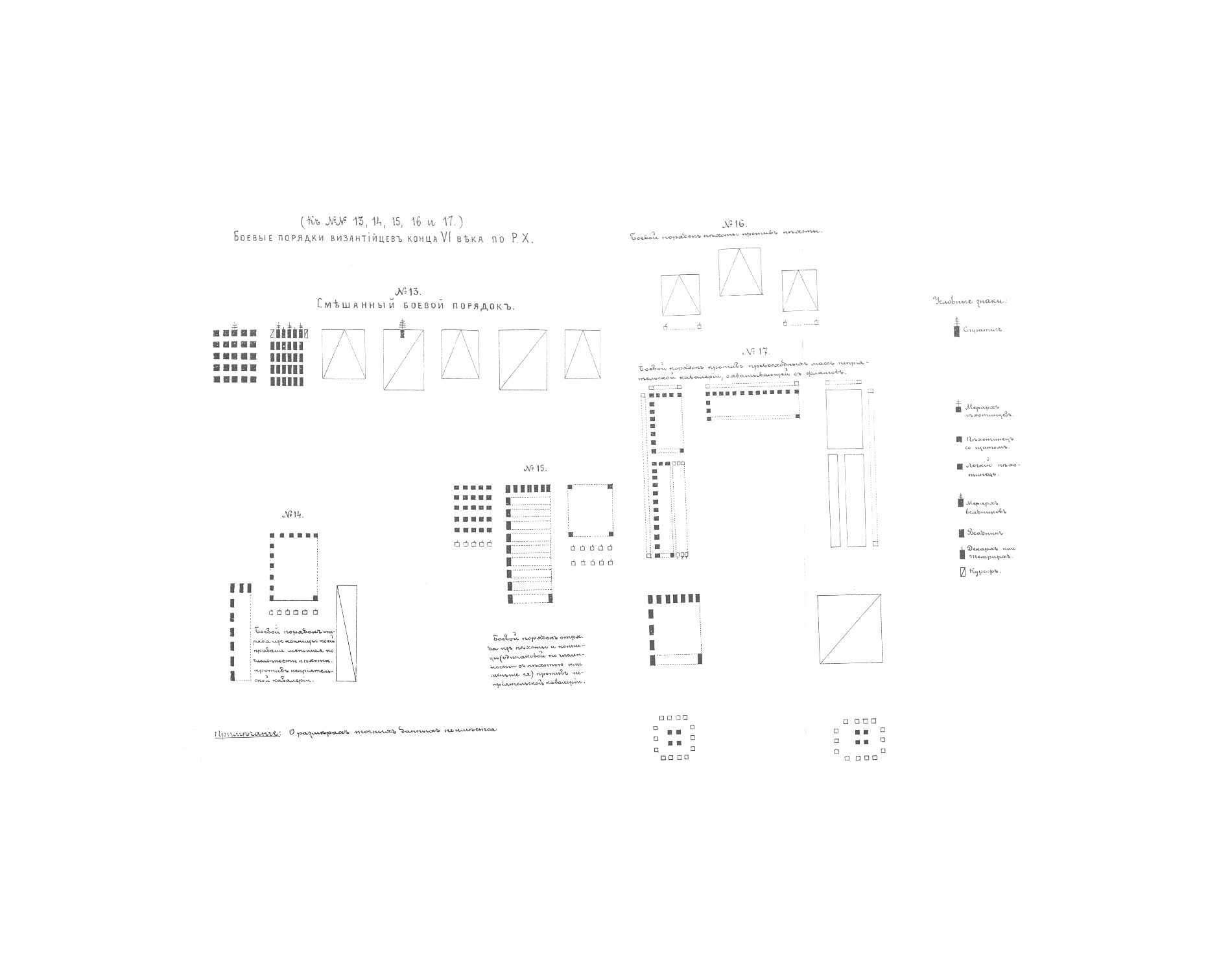 №14. Порядки византийцев конца VI века. Боевой порядок отряда из конницы и меньшей по численности пехоты, против неприятельской кавалерии.