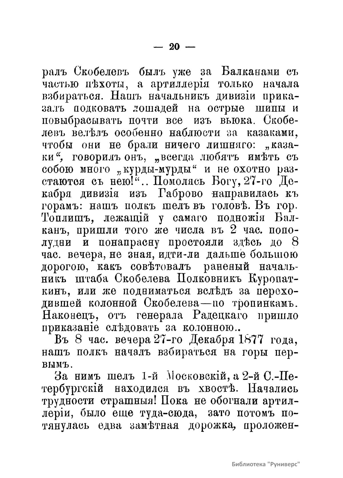 Популярная краткая брошюра хорунжего полка Бородина рассказывает об истории создания полка, а главное его боевых подвигах в ходе русско-турецкой войны 1877-1878 гг. В брошюре рассказывается об участии полка в переходе через балканские перевалы и сражении на Шипке-Шейново в отряде под командованием знаменитого генерала М.Д. Скобелева.