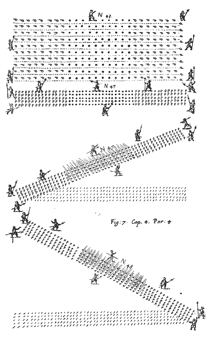 Иллюстрация походного строя копейщиков и пикинеров.