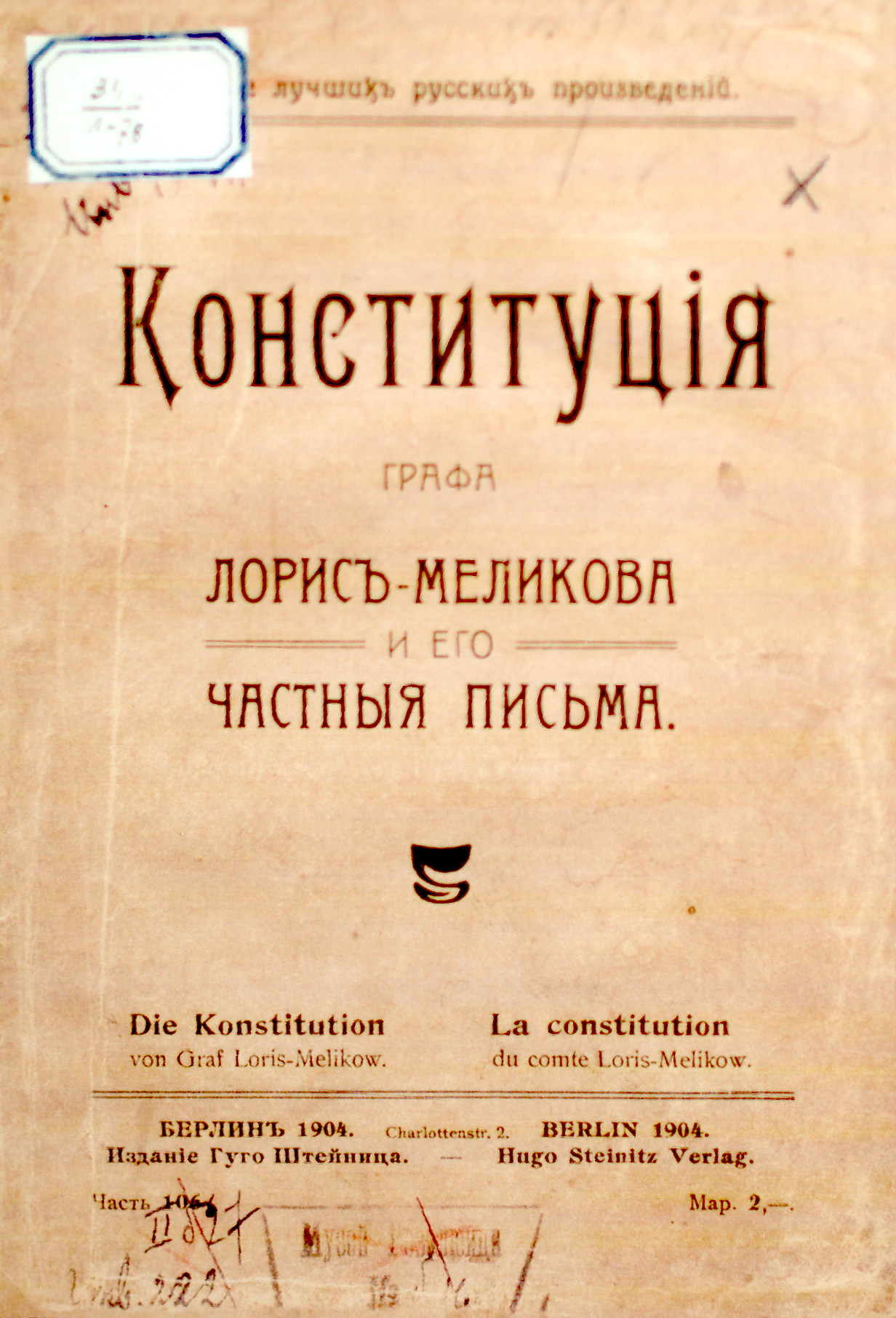 Обложка книги "Конституция Лорис-Меликова" (1904)