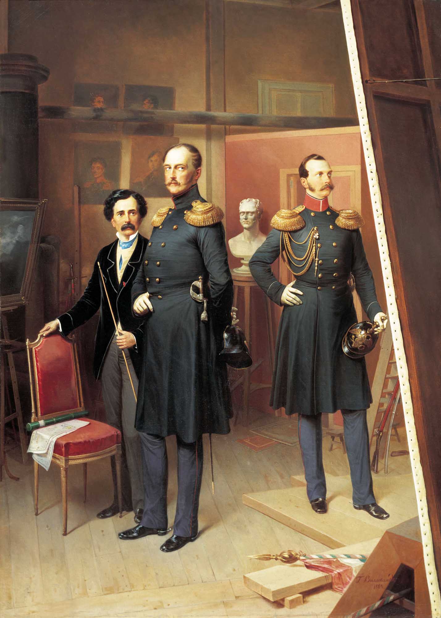 Николай I с цесаревичем Александром Николаевичем в мастерской художника в 1854 году