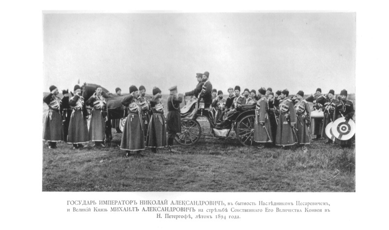 Государь Император Николай Александрович, в бытность Наследником Цесаревичем, и Великий Князь Михаил Александрович на стрельбе Собственного Его Величества Конвоя в Н. Петергофе, летом 1894 года