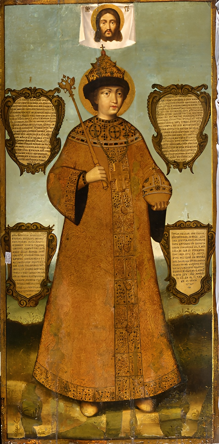Царь Фёдор Алексеевич перед образом Спаса Нерукотворного