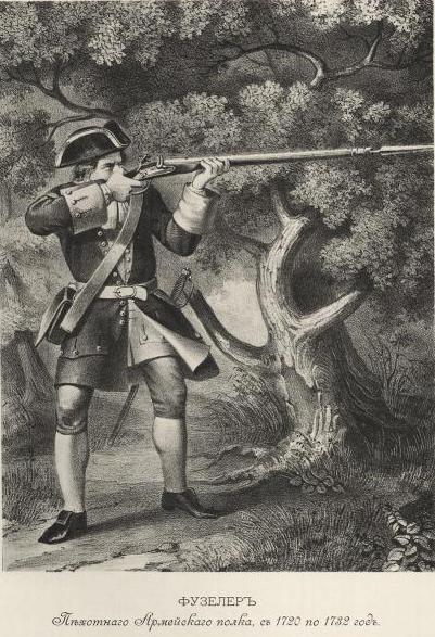 Рядовой армейского пехотного полка в 1720—32 гг. Литография XIX века/div> «Петр Великий крепко привязал дворянство к бессрочной государственной службе и в государственных видах стеснил дворянское землевладение условиями закона о единонаследии 1714 г. Посл
