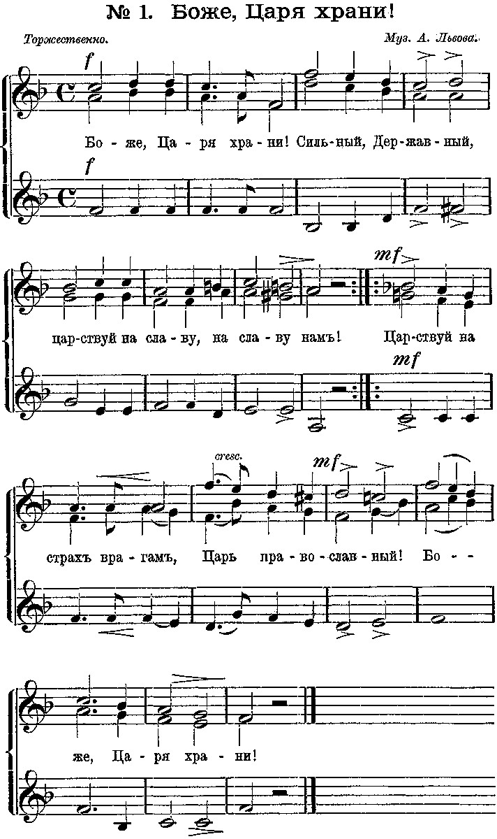 Партитура гимна «Боже, царя храни», 1833 год