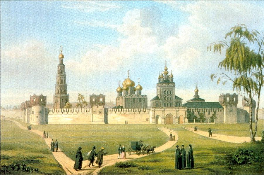 Монастырь на Девичьем поле в 1680-90 гг. Литография К.Чарльза. 1840 год