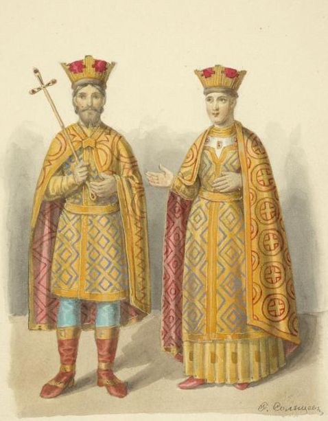 Василий I Дмитриевич и его жена Софья Витовтовна. Изображение на Большом саккосе митрополита Фотия. XIX век
