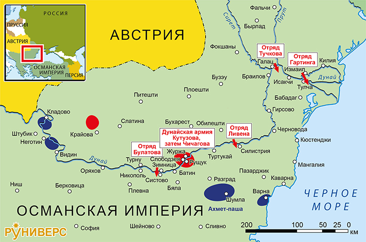 Действия на Дунае в начале 1812 г. и расположение русских и турецких войск ко времени заключения Бухарестского мира 1812 г.