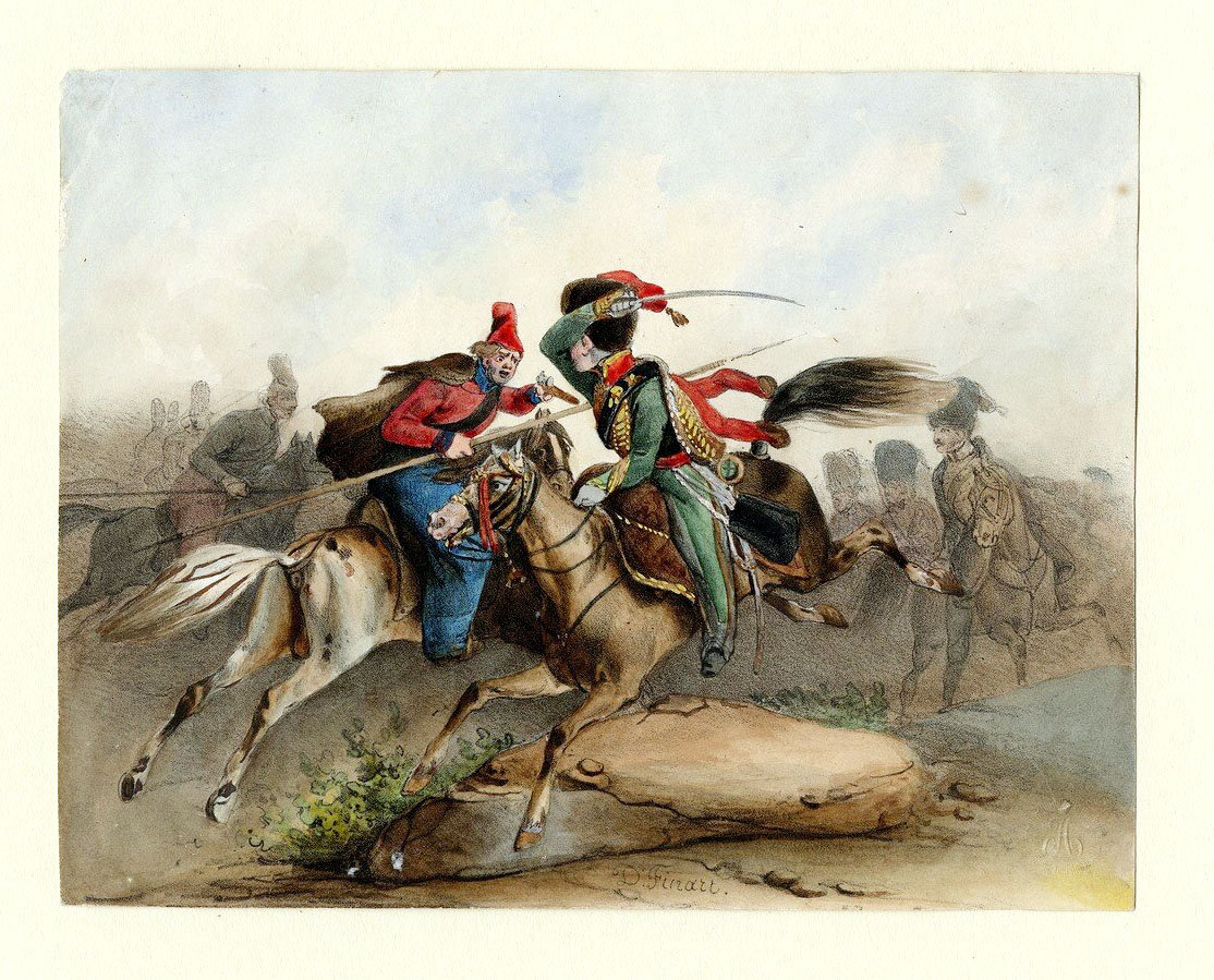 Французский конный егерь в схватке с русским казаком