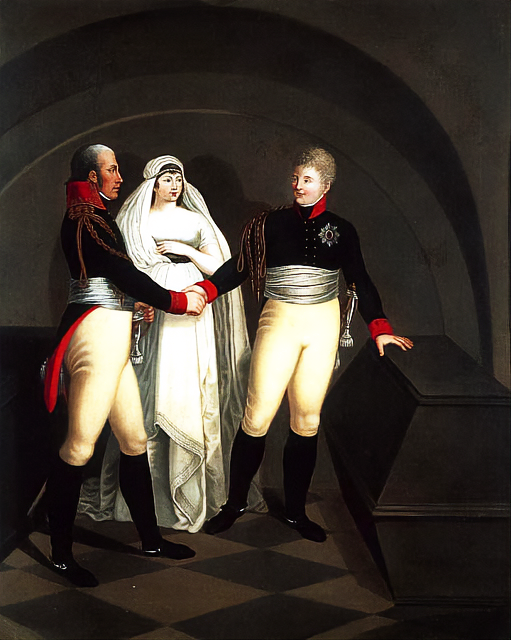 Александр I поклоняется останкам Фридриха Великого в присутствии короля Фридриха Вильгельма III и королевы Луизы